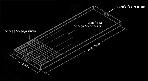 הכיסוי בנוי ממשטח בגובה 40 מ”מ בעובי 5 מ”מ במרווח של 60 מ”מ